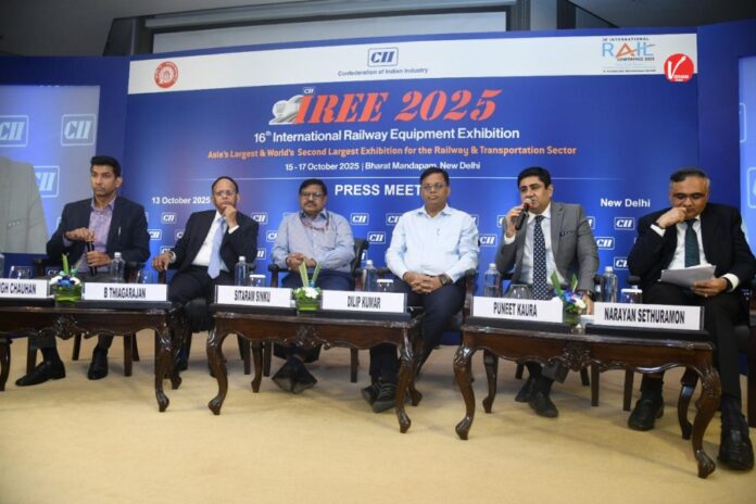 कुन्दन सिंह : भारतीय उद्योग परिसंघ (CII) द्वारा एशिया की सबसे बड़ी इंटरनेशनल रेलवे इक्विपमेंट एग्ज़िबिशन (IREE) 2025 के16वें संस्करण का आयोजन 15 से 17 अक्टूबर तक नई दिल्ली स्थित भारत मंडपम में किया जा रहा है। यह आयोजन भारतीय रेल के सहयोग से किया जा रहा है। सोमवार को इस संबंध में प्रेस कॉन्फ्रेंस का आयोजन हुआ। जिसमें प्रदर्शनी की प्रमुख विषय-वस्तुओं, थीम्स और वैश्विक सहभागिता से जुड़ी जानकारी साझा की गई। जिसमें भारतीय रेल के साथ देश-विदेश की अनेक प्रमुख कंपनियों हिस्सा लेंगी।