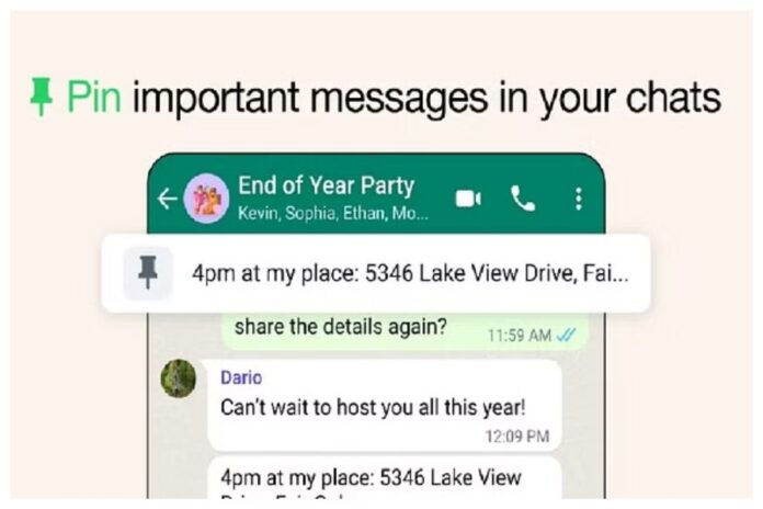 WhatsApp Update: वॉटसऐप ने अपने यूजर्स के लिए एक नया और बड़ा अपडेट जारी किया है। मेटा के स्वामित्व वाले WhatsApp के यूजर्स अब किसी भी चैट के मैसेज को पिन कर सकेंगे और ये नया अपडेट दोनों ग्रुप और निजी चैट दोनों के लिए आया है। इसका मतलब है कि ग्रुप या किसी निजी चैट के किसी भी खास मैसेज को आप आसानी से पिन कर सकेंगे। WhatsApp कंपनी ने ये नया अपडेट iOS और Android दोनों के लिए इसू किया है। बता दें कि नया अपडेट ग्रुप और निजी चैट दोनों के लिए सराहनीय है