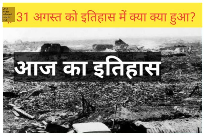 31 August in History: समय-समय पर देश और दुनिया में कई ऐसी घटनाएं हुई है, जिन्होंने भारतीय इतिहास के साथ दुनिया के इतिहास में भी अपनी एक अमिट छाप छोड़ी है, आज हम आपको अब तक के इतिहास में आज यानी कि 31 अगस्त के दिन घटी घटनाओं को बारे में विस्तार से बताएंगे, चलिए जानते हैं…