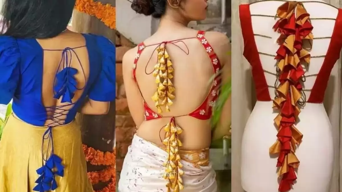 लटकन वाले बैकलेस ब्लाउज डिजाइन
