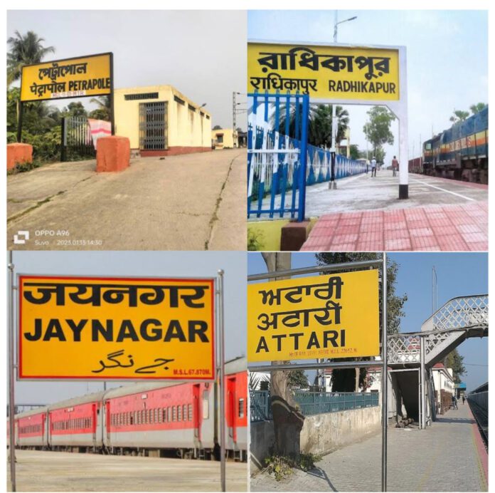 बंगाल के दिनाजपुर जिले में स्थित राधिकापुर रेलवे स्टेशन भी एक इंटरनेशनल रेलवे ट्रांजिट स्टेशन है, जहाँ से आप बांग्लादेश जा सकते हैं। यह स्टेशन बांग्लादेश की सीमा से कुछ ही किलोमीटर की दूरी पर स्थित है और दोनों देशों के बीच ट्रेन सेवा का एक महत्वपूर्ण हिस्सा है।